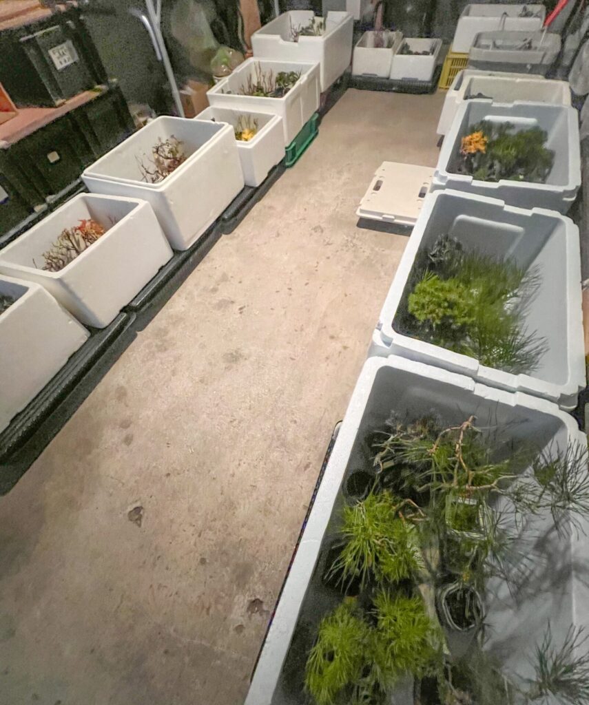 本日盆栽のムロ入れ完了!昨年と同じ数の箱に収まって一安心。 来年4月までここ(車庫内)で暮らします。 あー疲れた腰にくる。風呂入って寝よう。