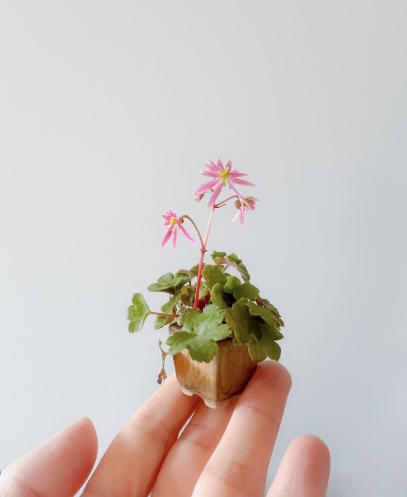 大文字草の最後は赤味が濃い花。ほかのに比べると軸も短くとまりました。