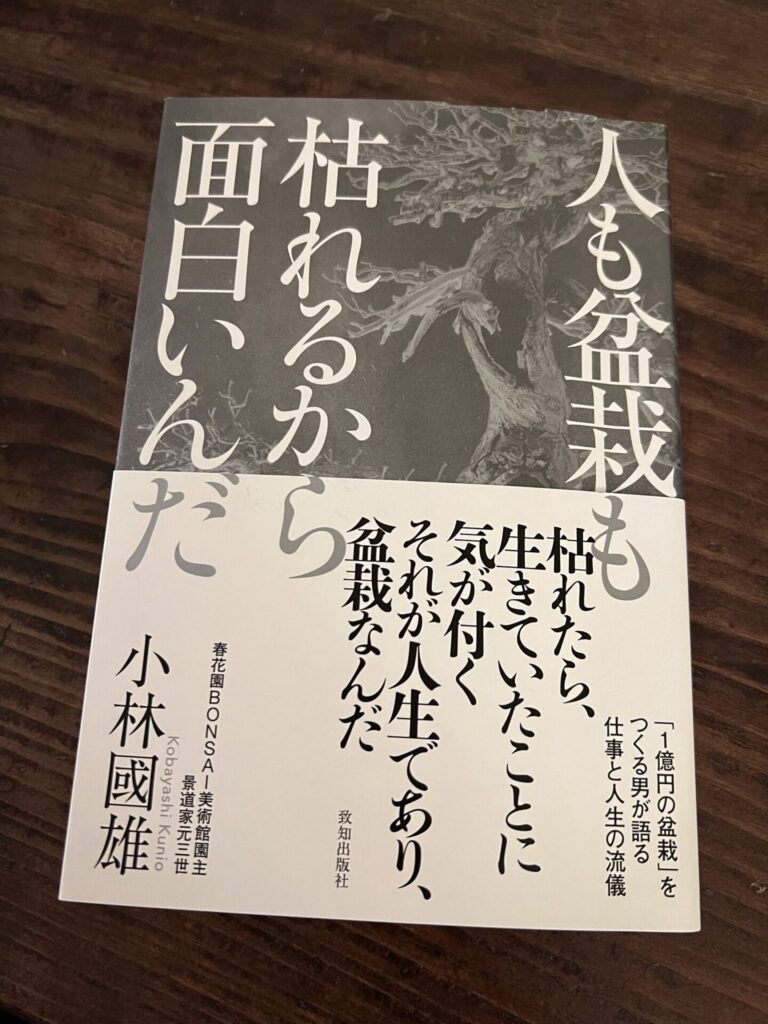 小林國雄さんと古くからお付き合いのある盆栽の先生から、本日小林氏のサイン入り新刊をいただきました! タイトルが痺れますねー。楽しみです。 #小林國雄 #人も盆栽も枯れるから面白いんだ