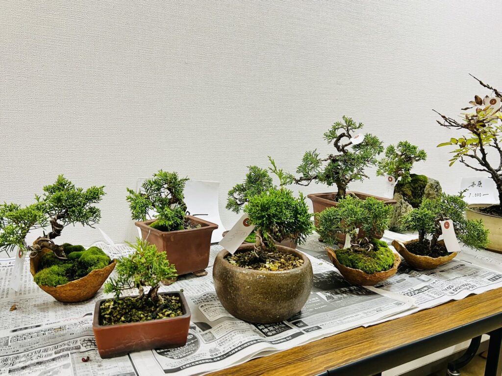 日本盆栽協会千歳支部 展示会にお伺いしました!素晴らしい展示が並ぶなか、売店では今回ミニ真柏の素材が充実しておりました!!!