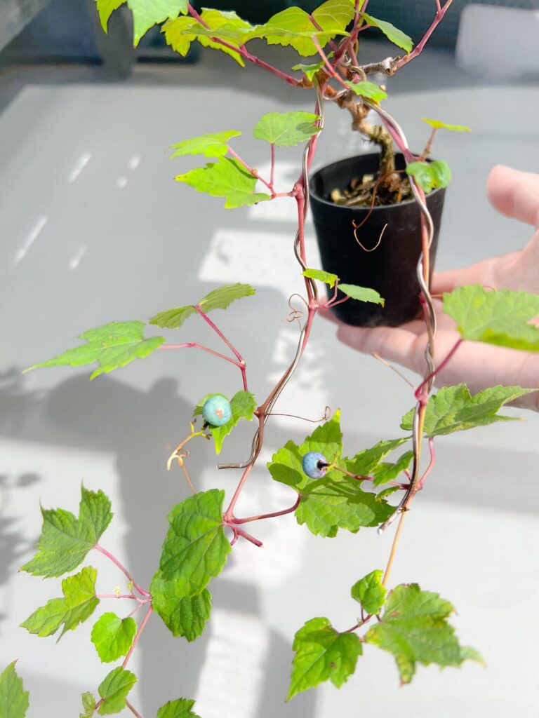 久しぶりにスカッと晴れた日! 野ぶどうの実が色づきはじめました。たった二つだけど青紫のグラデーションがキレイで嬉しい。