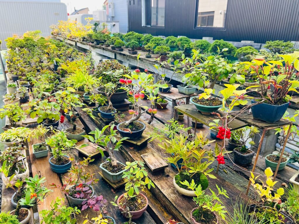 一昨日秋晴れの中先輩方と倶知安の石谷園へ!札幌より一足早く実や葉が色づき始めた秋の盆栽たち最高でした!今年の営業は10月中旬までだそうです。 ガクにラインが入った綺麗なホソバリンドウをおまけにいただいた